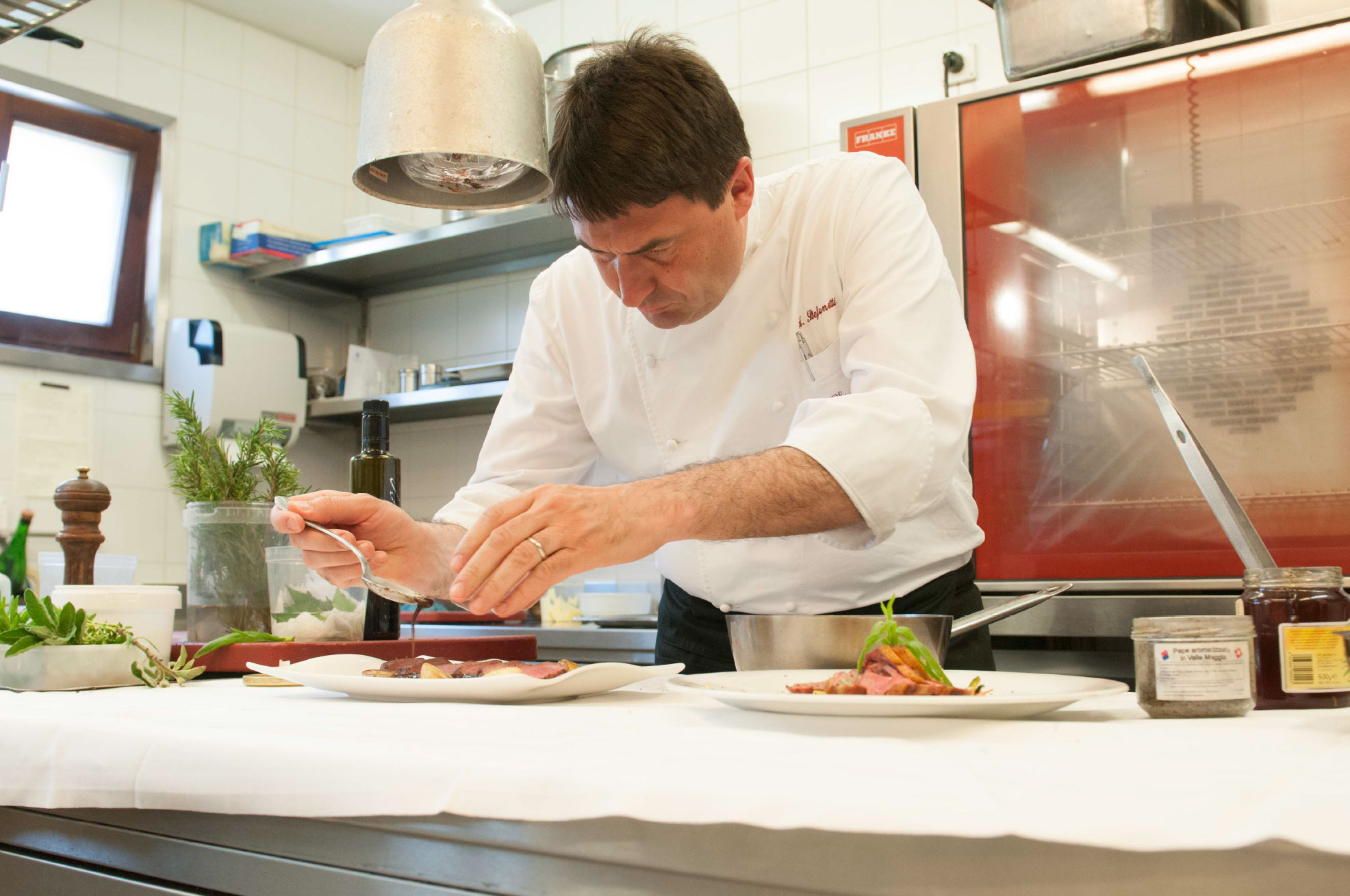 Ambrogio Stefanetti è l'anima della nostra cucina. Rispetto per la stagionalità, materie prime locali e passione per la tradizione: nei suoi piatti convivono autenticità e creatività, per emozionarvi a ogni portata.