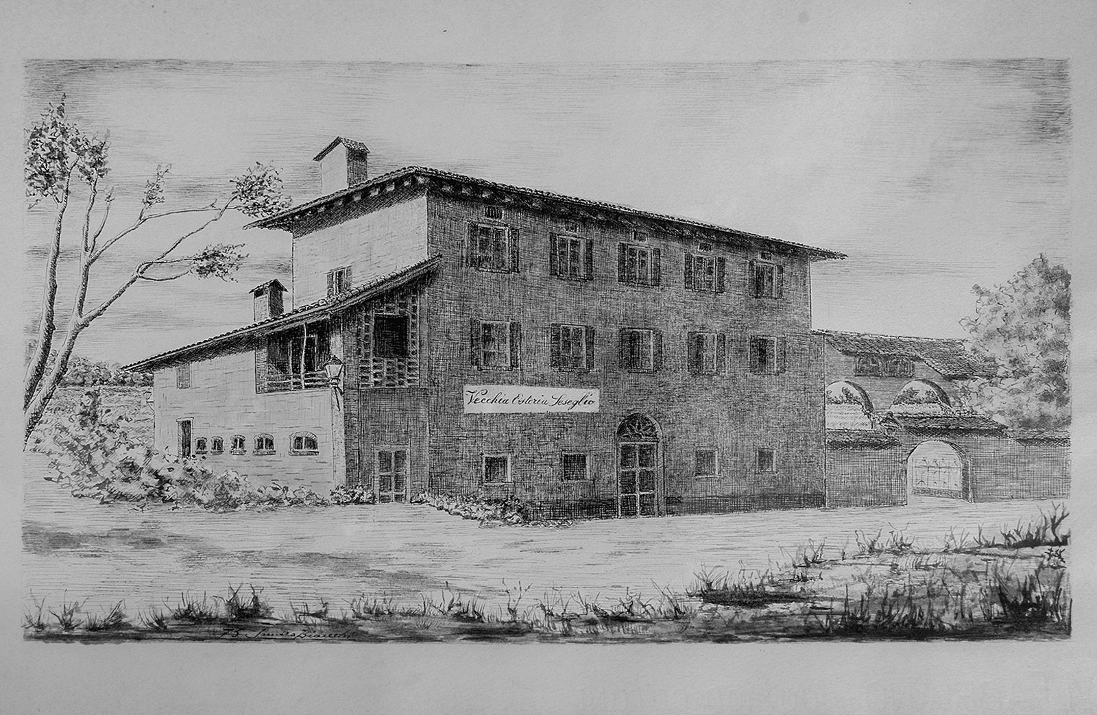 La Vecchia Osteria di Seseglio è nata come casa colonica collocata nella zona agricola di Seseglio, al confine con l’Italia. Difficile risalire all’anno di costruzione dell’edificio, ma all’interno della Vecchia Osteria si trovano tre camini, tra i quali uno datato 1861 e l’altro 1868. Si presume che in passato le proprietà fossero due: una parte adibita a osteria, poi trasformata in ristorante e un’altra adiacente con la stalla, la corte e le strutture caratteristiche della ruralità dei tempi passati. Entrambe le proprietà sono state recentemente ristrutturate nel pieno rispetto dei materiali e spazi originari.